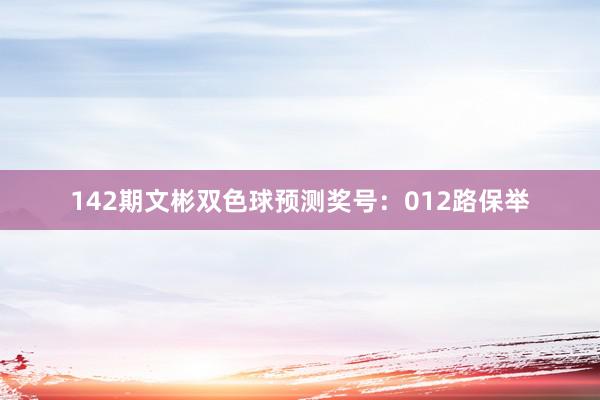 142期文彬双色球预测奖号:012路保举