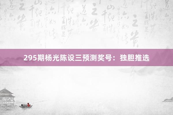 295期杨光陈设三预测奖号:独胆推选